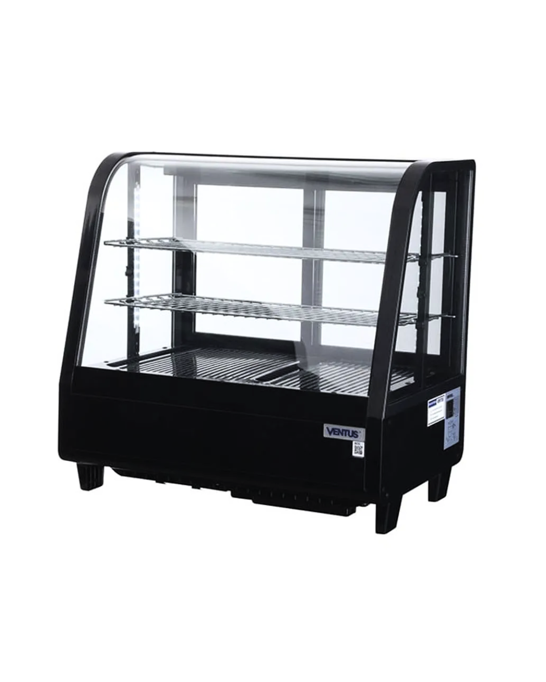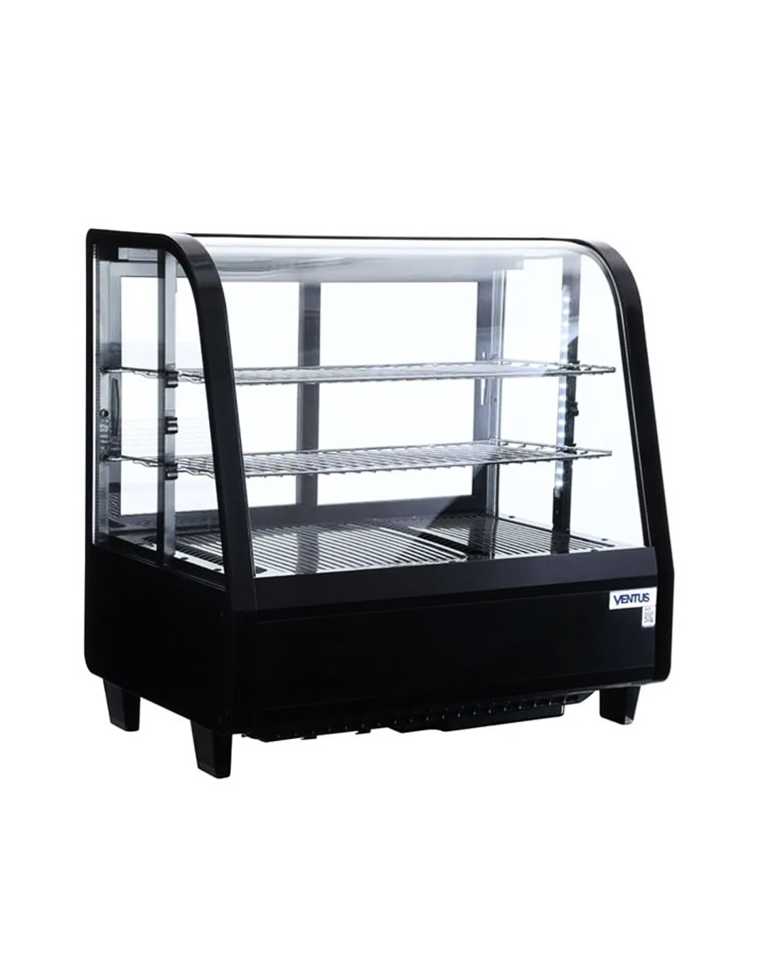 La Ventus VER-100L está diseñada para ser el centro de atención en tu mesón. Con un elegante acabado en color negro y una estructura de vidrio curvo panorámico, permite que tus pasteles, postres o sándwiches se luzcan desde cualquier ángulo.